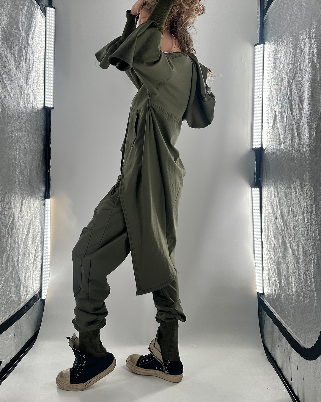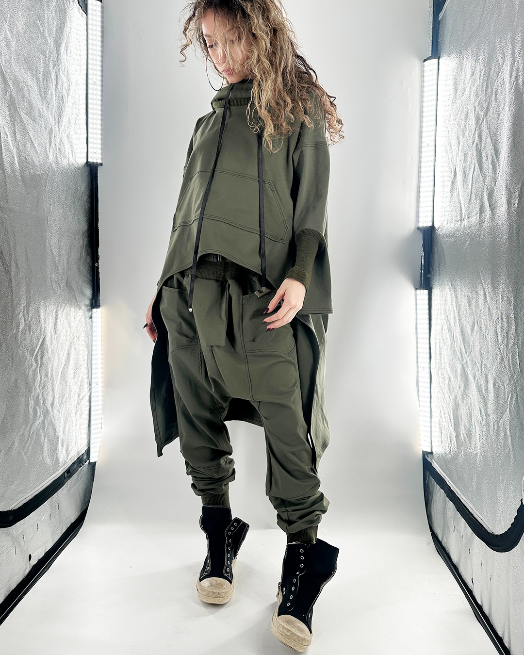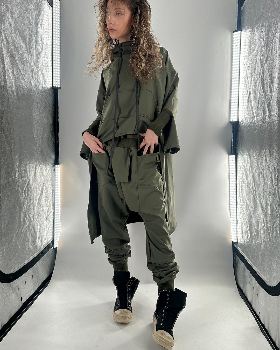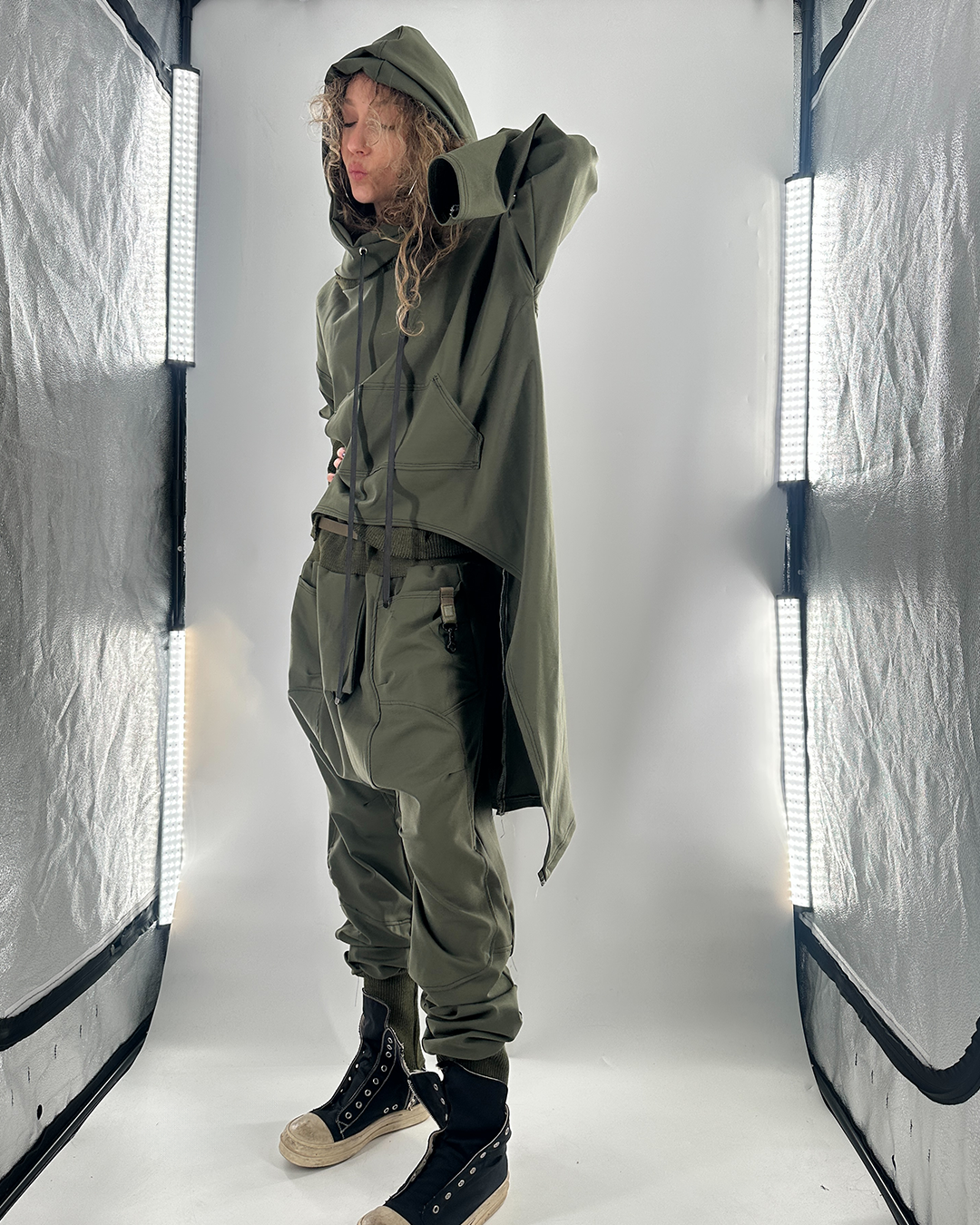 Functional Details: Includes a cozy, deep hood and a front kangaroo pocket, blending fashion-forward design with practical sweatshirt elements.