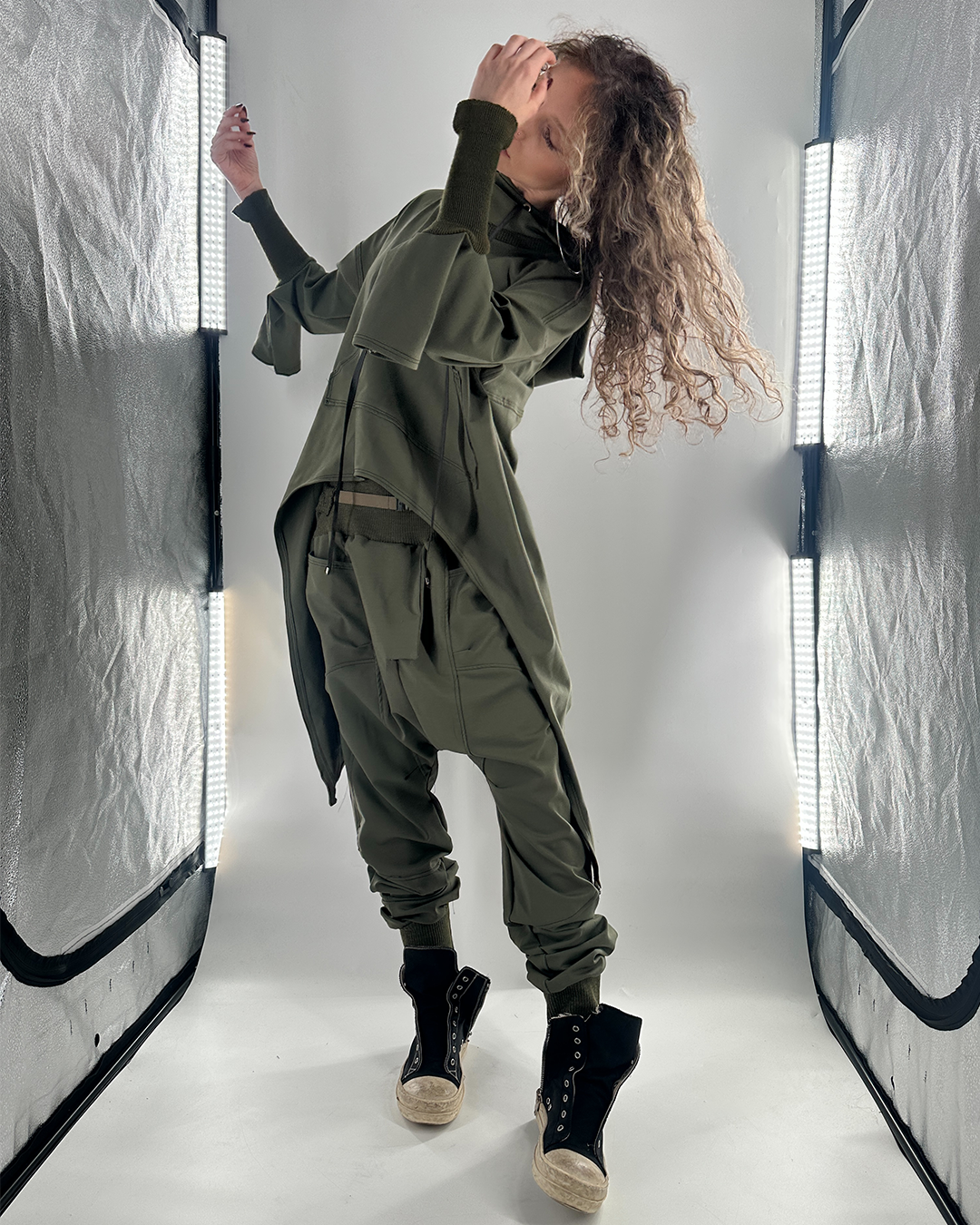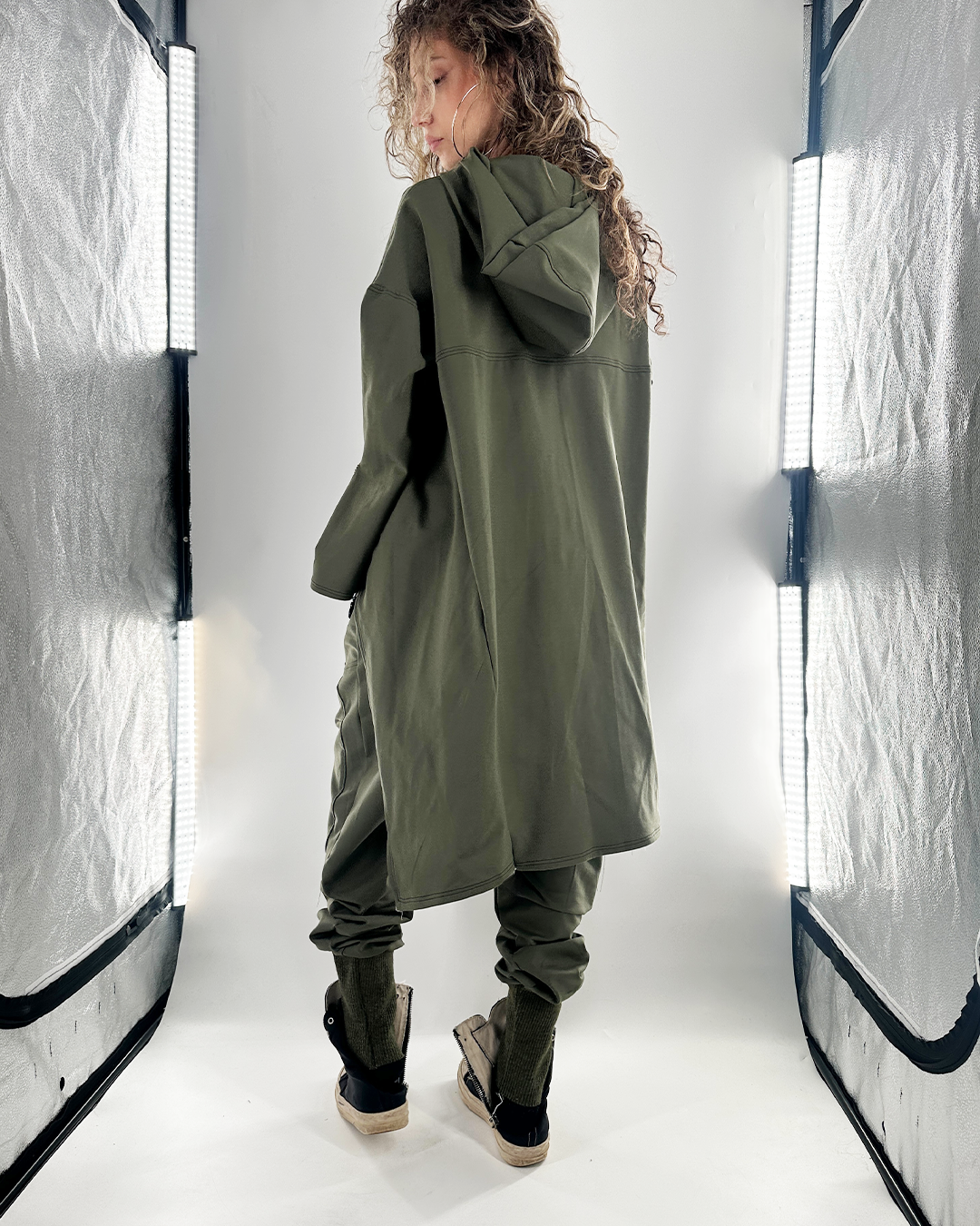 Dramatic High-Low Hem: Features an extended back that drapes down below the hips, creating a cascading, cape-like effect that provides an architectural shape and excellent coverage.