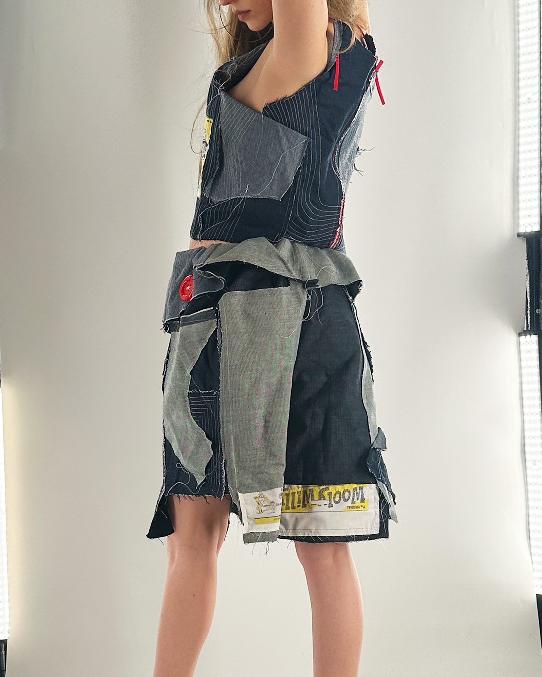 Style: Deconstructed, raw-edge, upcycled lounge set.