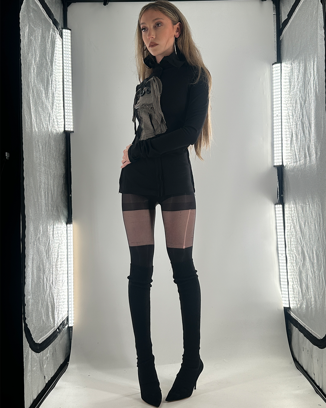 Exposed Seam Construction: All seams are meticulously constructed and visible on the exterior, running down the sleeves and body to create a defining, raw, and deconstructed aesthetic.