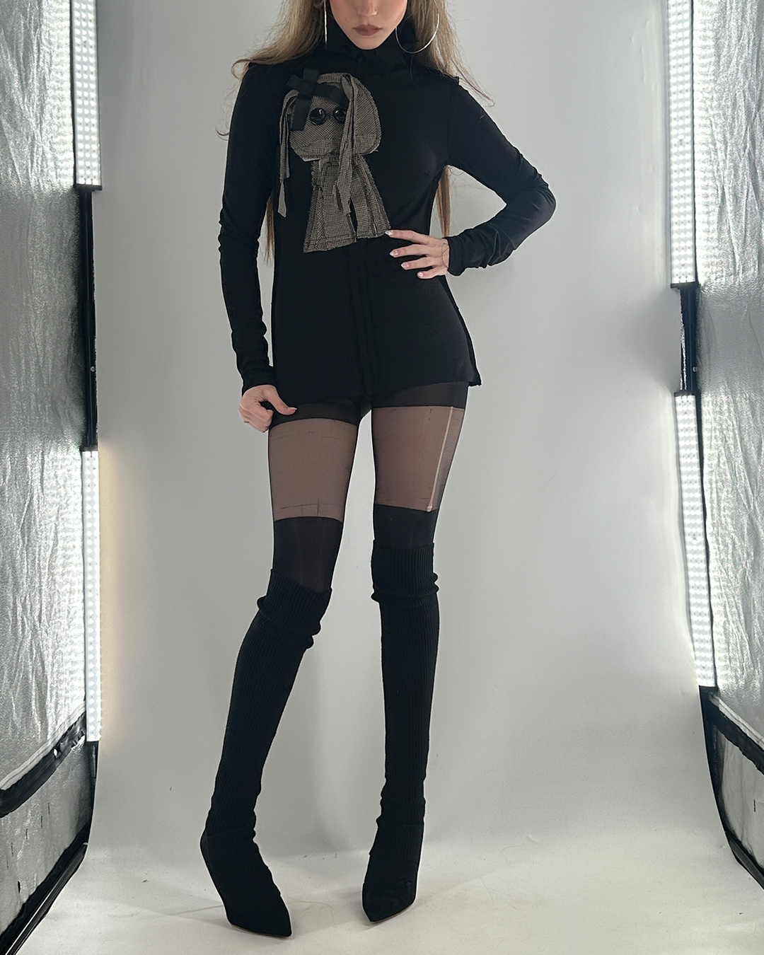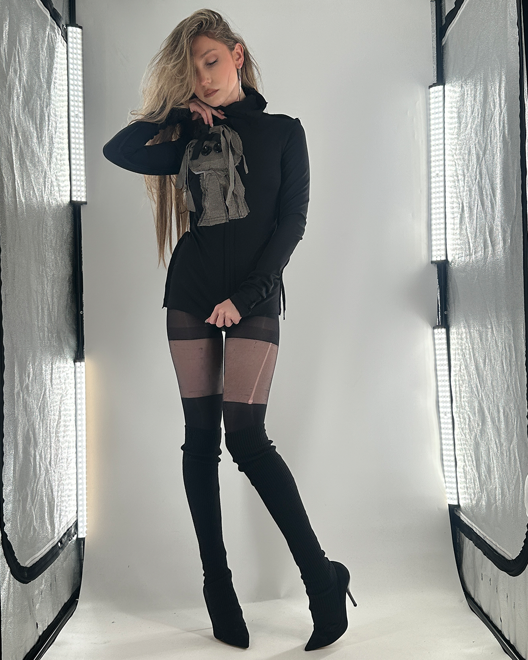Silhouette: The cut is designed to be highly form-fitting, emphasizing a sharp, elongated silhouette.